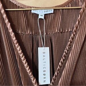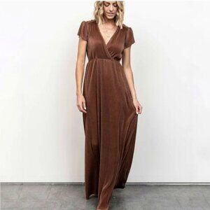 Baltic Born | NWT Athena Pleated Satin Maxi Dress Crossover Neck Bronze Size M