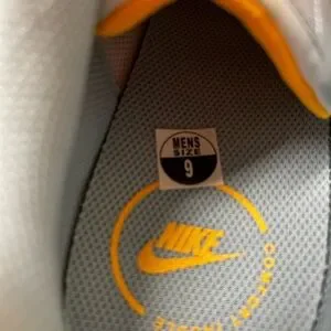 Stylish Nike sneakers in white with orange accents. Perfect for casual wear.