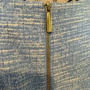 This elegant blue dress offers a sophisticated look for any occasion. Its classic design and comfortable fit make it a wardrobe essential. The material is almost a boucle. Has a bit of stretch to it. I got so many compliments on this dress when I wore it to my niece’s rehearsal dinner. The shade of blue is beautiful and with the flash of gold in the zipper in the back it’s just absolutely perfect! Bust is 44 waist 36 1/2 hip 46 1/2 length of dress for shoulder to hem is approximately 41 inches. I love the cut of this dress so much. I bought four of them! If interested, please see my other listings!