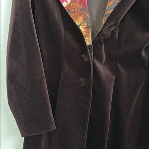 Elegant brown coat with a stunning floral collar. Vintage piece made in France, size 42, fits like a US small.