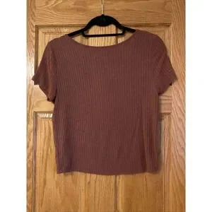 American Eagle Women’s Short Sleeve Ribbed Crop Top sz M Rust Red