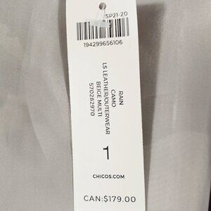 Chico's NWT Rain/Weather Jacket, Beige/Gray/Multi Camo, Size 1 U.S. 8/10.