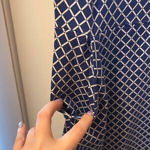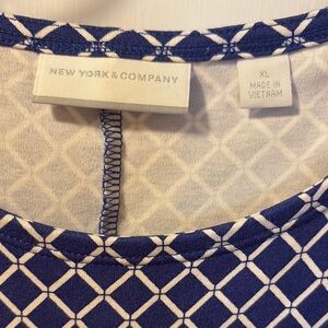 NY&Co cotton, stretchy, with pockets, blue and white, size XL. This elegant blue patterned dress is perfect for any occasion. Its stylish design and comfortable fit make it a must-have in your wardrobe.