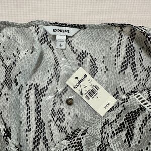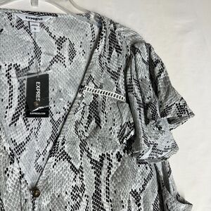 NWT Express Womens Blouse Snake Python Front Tie Ruffled Soft Rayon Top Size L