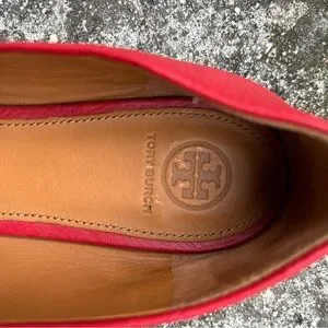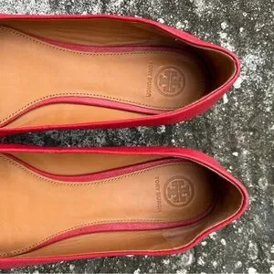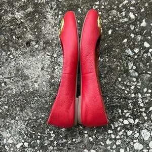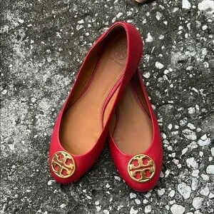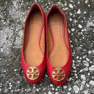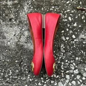 Tory Burch CHELSEA Red Ballet Flats with Gold Accents