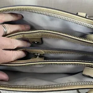Some wear/Markings on the handles (see photos), some marks on interior lining. Gorgeous bag for the spring!!! No M1220-23348