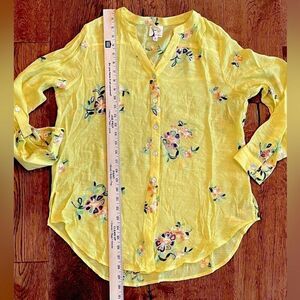 This is a GORGEOUS and unique Semi Sheer Embroidered Yellow Button Up Down Floral Blouse