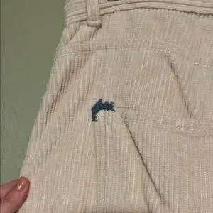 Wide wale cream corduroy Utility Pants. Visibly mended rear pocket, and old leather tag. True to my experience of RJ size 4.