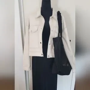 Elevate your style with this chic cream jacket. Perfect for any occasion, this jacket offers both comfort and elegance.