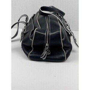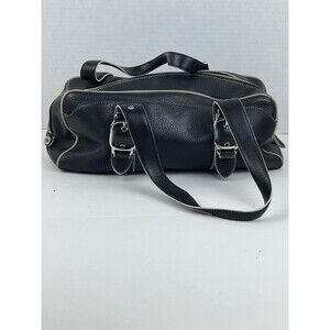 Cole Haan Black Pebbled Leather Satchel Bag with Robin Egg Blue Lining In good used condition The Piping edge is worn and needs cleaning It's also miss shaped See pictures
