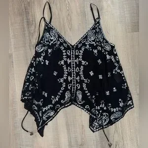 Free People Black Sequin Asymmetrical Tie Camisole Top XS