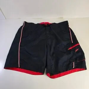 Speedo Black Red Swim Shorts Zipper Side Pocket size X-Large