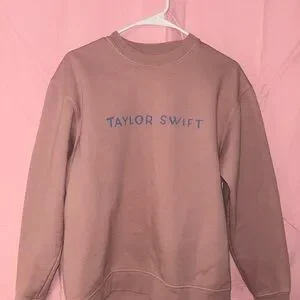Cozy crew neck sweater. Features 'Taylor Swift' text. Soft and stylish.