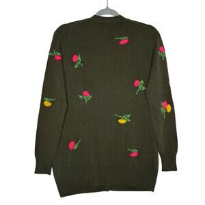 • Keywords: women's, fruit, floral, cherry, office, work, workwear, casual, career, careerwear, layering piece, loungewear, cozy, comfy, spring, fall, j crew, quirky, school, grandmacore, cottagecore, granny, softcore