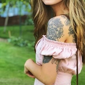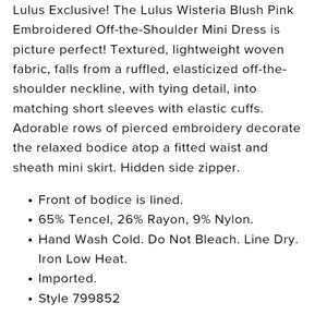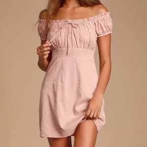 Lulu's Blush Pink Embroidered Off Shoulder Mini Dress S
