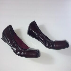 Theory Patent Leather Wedge Ballet Flats Burgundy