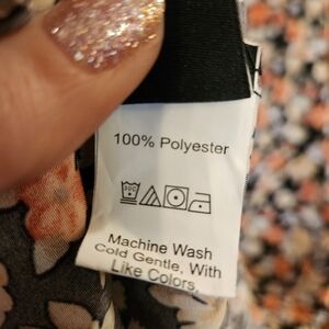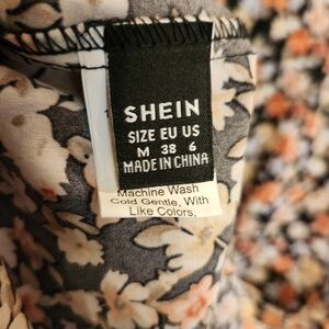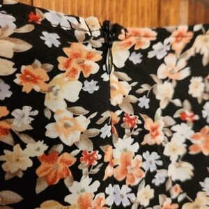 Short Sleeve Floral Midi Dress - Black with Coral and Cream Flowers - Size 6