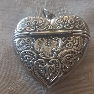 Vintage Heart Shaped Pill/Snuff Repousse Pendant, Sterling Silver
