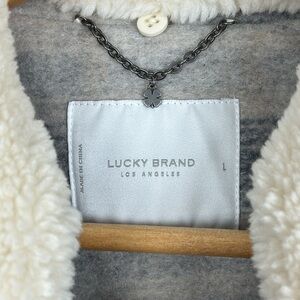 Lucky Brand Oversized Plaid Shirt Jacket. Faux Fur. Size L.