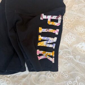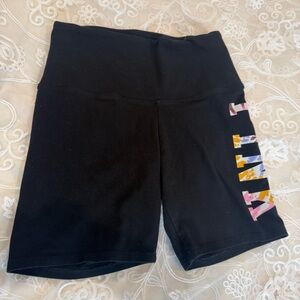 PINK Victoria's Secret Black Bike Shorts with Iridescent Logo