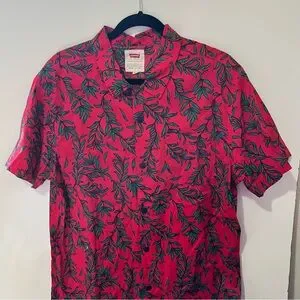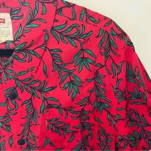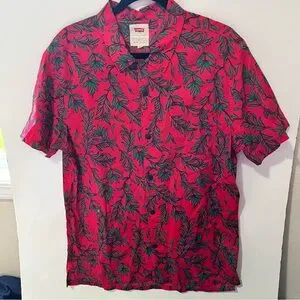 mens Levi's Red and Green Casual Button Down Shirt with Tropical Pattern