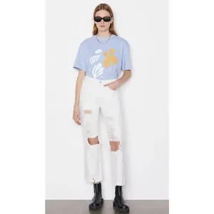 Frame Le Jane Crop Distressed Straight-Leg Jean 27 White Rumpled Blanc Destruct