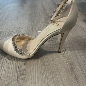 Luxe White Satin Heels with Crystal Embellishments