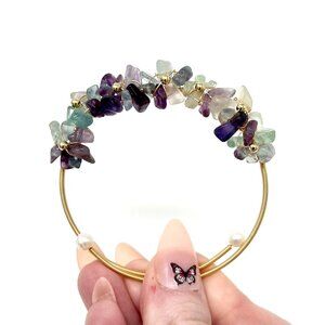 Fluorite Purple floral crystal chip bracelet bangle handmade stone accessories