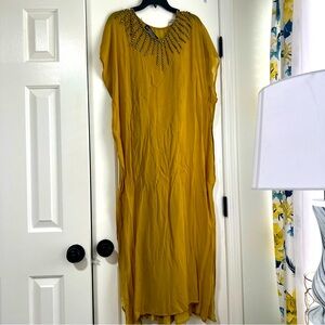 J. Peterman Company The Evening Caftan Gown Beaded Maxi Dress MuMu Yellow Gold M