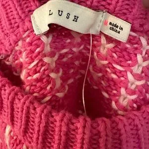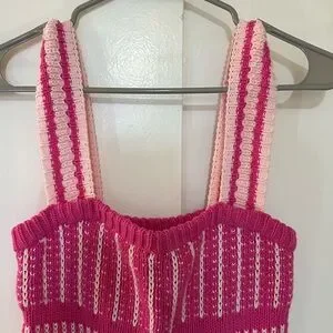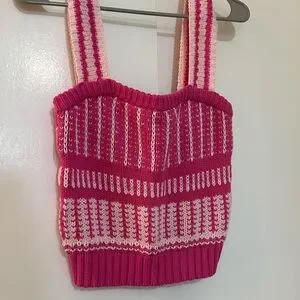 NWT Lush Crochet Striped Top Fuchsia Blush Women’s Size M