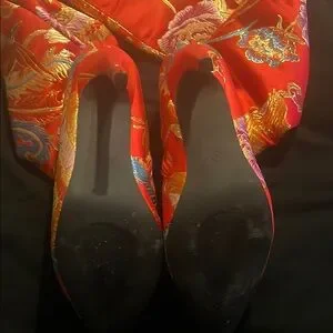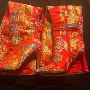 Red and Gold Stiletto Heeled Boots