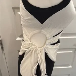 SOLD - FARM Rio One Shoulder Elegant Black and White Floral Dress Size S