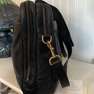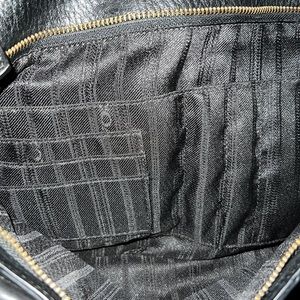 In very good condition with minimal wear to both interior and exterior. Multiple zippered compartments, storage for credit cards etc. Measures 16” w x 12.5” t x 4” d. Brass hardware, original price paid $548.00 from receipt included.