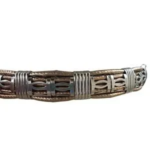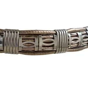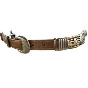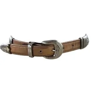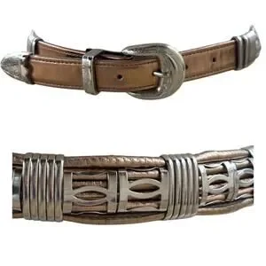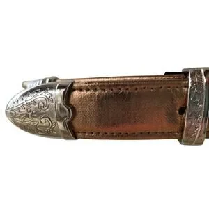 Vintage 80s Gold Copper Silver Belt M/L Etched Buckle Guard Tip Office Siren