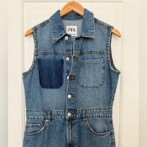 Zara Danielle Denim Asymmetrical Sleeveless Midi Dress Medium