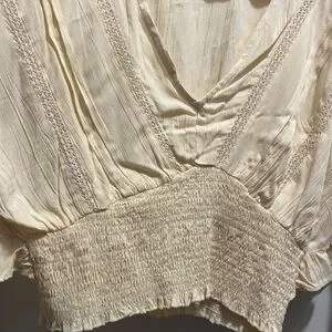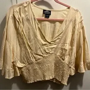 ANGIE Top Cream flutter sleeve CROPPED Top L