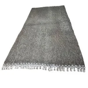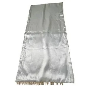 Shimmery sparkling glass beaded table runner in a champagne bronze gold tone color tone on a satin backing
