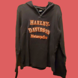 This is a really cute girl's size medium thermal/ waffle material hoodie. Front of this cute hoodie Is the word's Harley Davidson embroidered not printed. This is from 2007 as stated on the tag. This could possibly be used as a woman's extra small. I will post the measurements. Pit to pit laying flat 16 inches. It is also 16 inches from the very middle underneath the 2 buttons to the very bottom. The measurements from shoulder to sboulder are in the pictures.. Which looks to be 16 inches also.