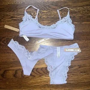 Size medium bralette and extra small lace thong and tanga in light purple!