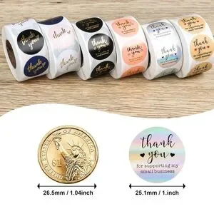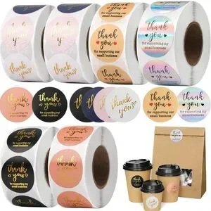 Thank You Stickers for Small Business – Show appreciation with our 1-inch thank you stickers. Each pack includes 1 roll (500 stickers) for a heartfelt touch.
