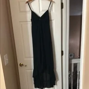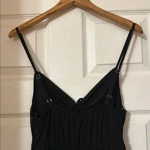 This elegant black strapless dress is perfect for any occasion. Its sleek design offers a timeless look that is both stylish and versatile. Gently worn.