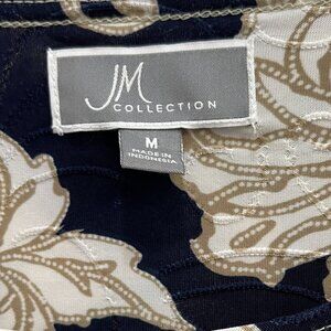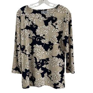 JM Collection Women’s Black Beige Floral Top Medium 3/4 Sleeve Stretch Blouse