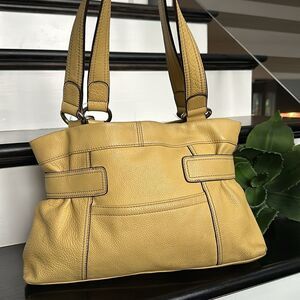 Tignanello, genuine, leather shoulder, handbag purse, mustard, yellow like new