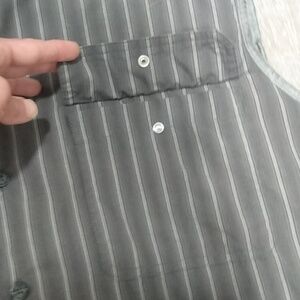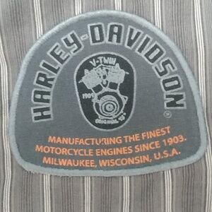 Features: Traditional button down design. Light, breathable cotton blend. Deep snap flap pockets. Large Harley Patch on back