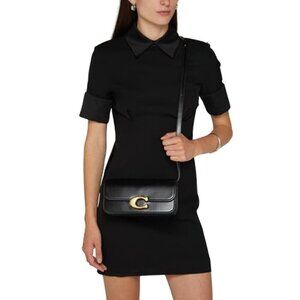 This black leather Tabby bag is ‘a modern take on an archival 1970s Coach design.’ It’s crafted to a structural rectangular silhouette with a gold-tone C clasp that acts as both decorative and functional detail.