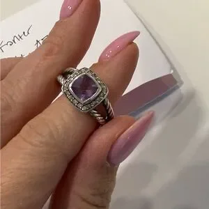 💜 David Yurman Petite Albion Ring Amethyst and Diamonds Size 8 💜