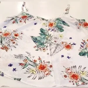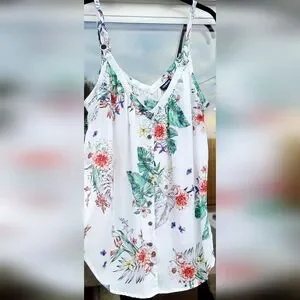 Torrid White Tropical Floral Button-Front Cami Tank Top – Size 00 -M/L - Size 10