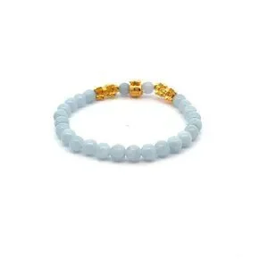 18K Gold Pixiu Piyao Money Bag Charm Bracelet Birthstone Gemstone Aquamarine 6mm