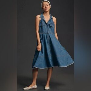 Anthropology Pilcro Sleeveless Halter Swing Denim Midi Dress Size Small NWT