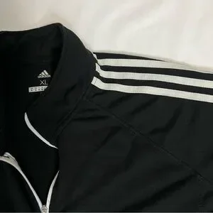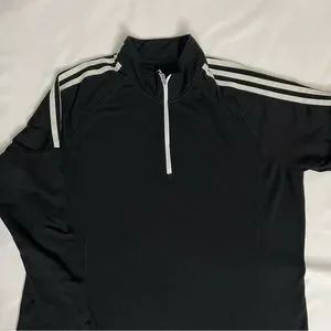 The Adidas Climalite 3 Stripes 1/4 Zip Pullover is perfect for those colder days on or off the course. This premium pullover features a terry fleece body and 1/4 zip front for easy off/off and conditions change. Also has a has a mock neck and puremotion stretch technology for the perfect fit. Men's sizing.